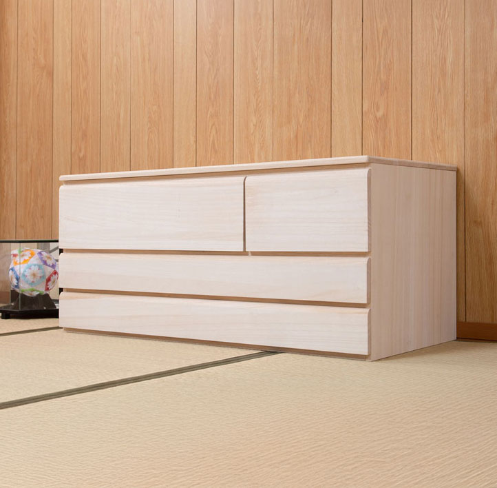 完成品 日本製 桐チェスト 4段 幅119 収納 引き出し たんす 桐たんす 衣類収納 白 ホワイト 四段 組立不要 棚 チェスト 和室 リビング