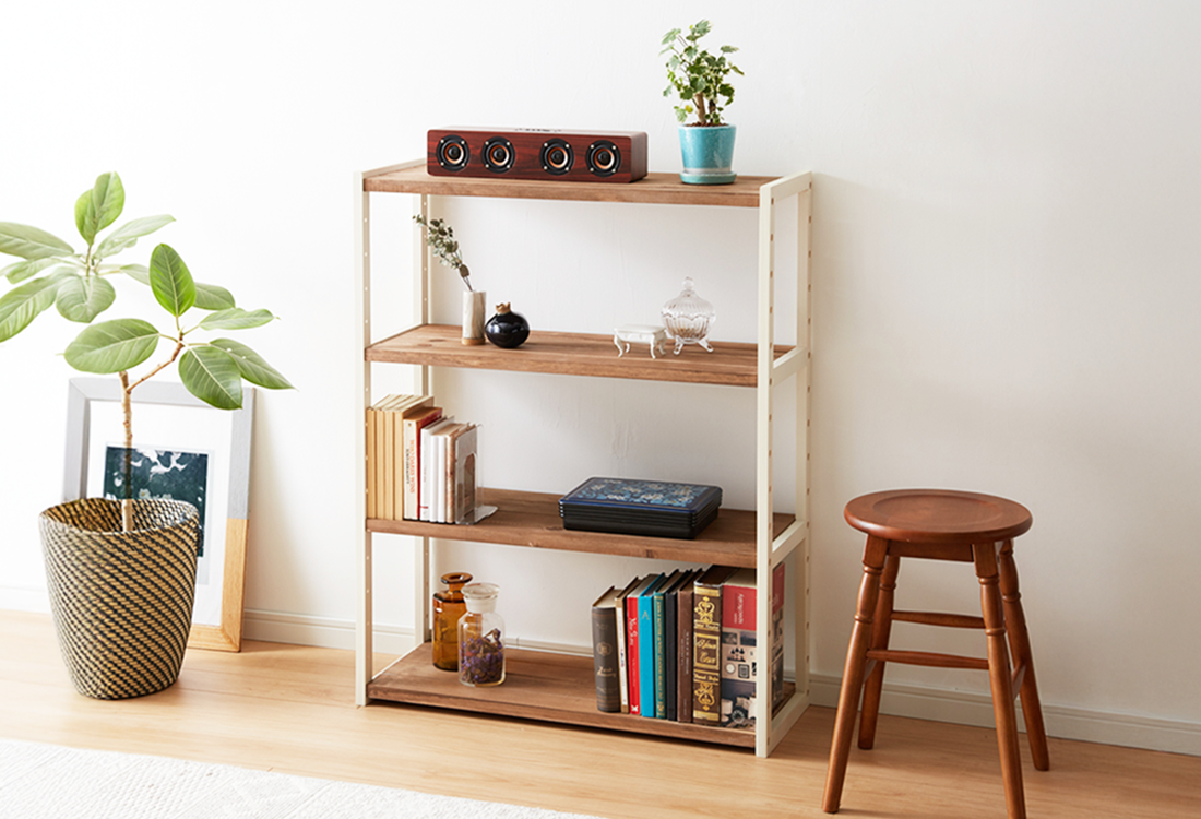 天然木 パインラック 4段 幅82 オープンラック 三段 おしゃれ 木目 木製 収納 パイン材 シェルフ 奥行き30 高さ121.4 北欧 ラック 木目調(代引不可)