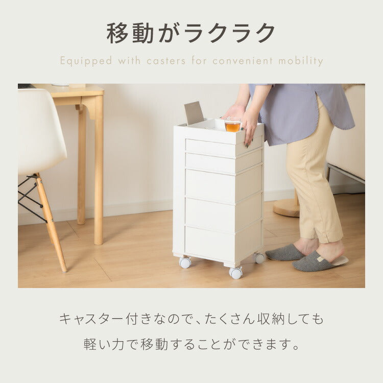 上段3段は浅く細かい物を収納できるスライド引き出し、下段3段は深くたっぷり収納できる引き出しとなっております。