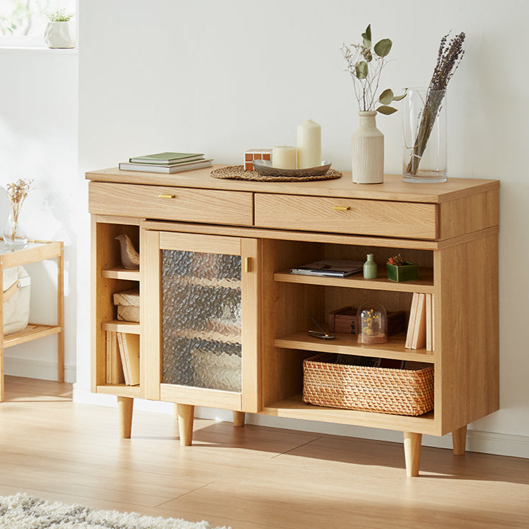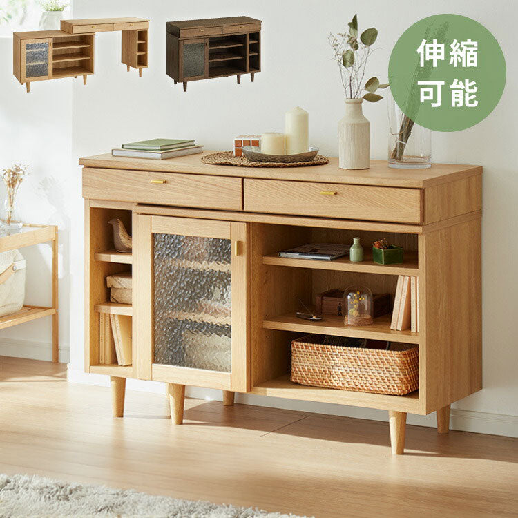 スライドシェルフ 幅110cm キャビネット 伸縮タイプ 天然木 脚付き ガラス扉 サイドボード リビングボード 収納家具 サイドチェスト オーク ウォールナット 木製 リビング ダイニング(代引不可)