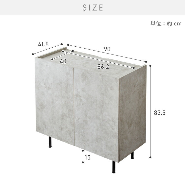 キャビネット ストーン調 幅90cm チェスト リビングボード 開き扉 セラミック調 グレー 収納棚 サイドボード サイドチェスト サイドキャビネット テレビ台 ハイタイプ 脚付き スチール脚の数量を減らす