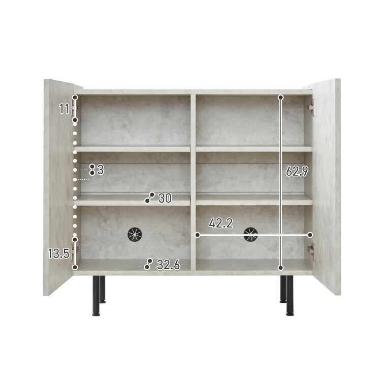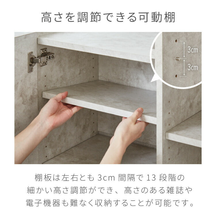 キャビネット ストーン調 幅90cm チェスト リビングボード 開き扉 セラミック調 グレー 収納棚 サイドボード サイドチェスト サイドキャビネット テレビ台 ハイタイプ 脚付き スチール脚の数量を増やす