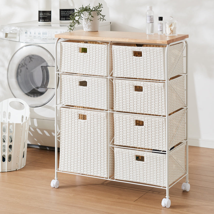天板付き キャスター付きラタン調サニタリー収納 幅70cm ワイド 大容量 引き出し 木製天板 サニタリーチェスト サニタリー すき間 チェスト ランドリー 棚 ラック チェスト ランドリー収納