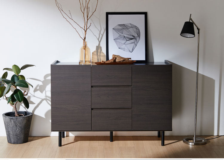 北欧風 キャビネット 幅125 オーク 日本製 完成品 引き出し3段 おしゃれ カウンター 間仕切り 国産 ナチュラル 木目 オレフィン 脚付き 収納 チェスト リビング 収納 スチール脚(代引不可)