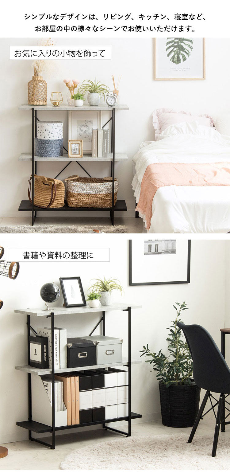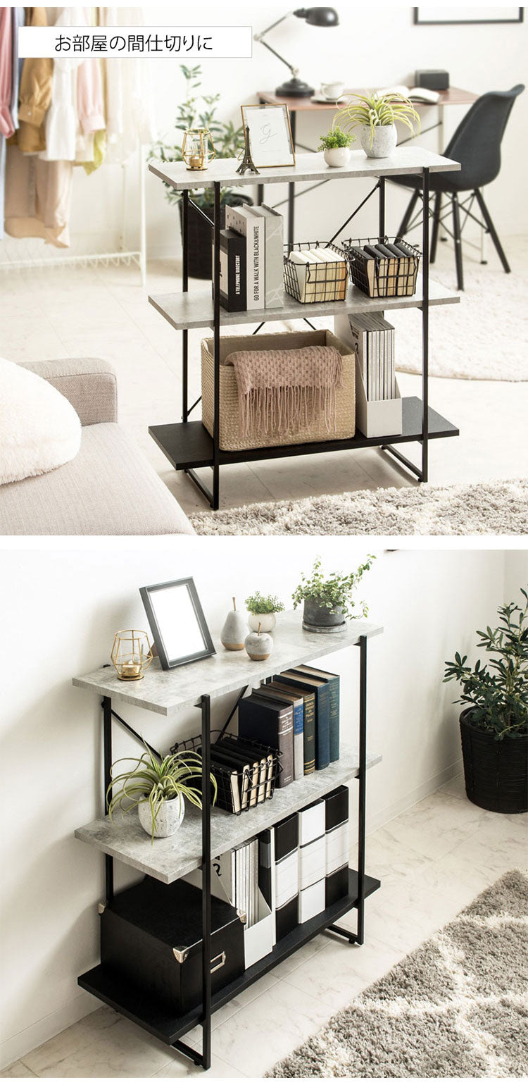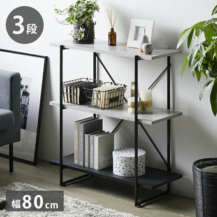 オープンラック ストーン調 3段 幅80cm ラック 本棚 シェルフ 飾り棚 間仕切り a4 収納 奥行30 スリム 省スペース 石目調 おしゃれ シンプル モダン インダストリアル(代引不可)