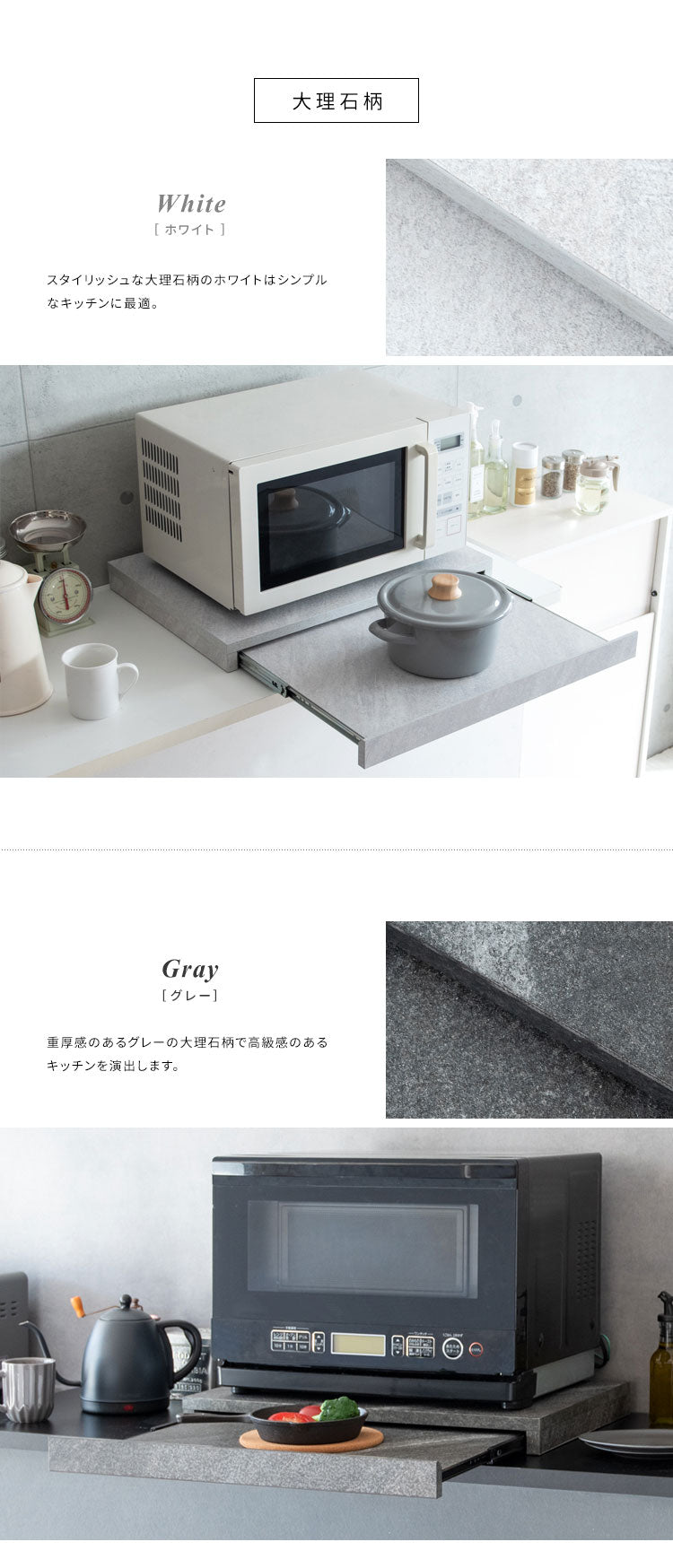 レンジや家電の下に置くだけで作業スペースが作れるレンジ下トレー「Avenir(アベニール)」。トレーに調理器具や料理がサッと置けて家事効率アップ間違いなし。