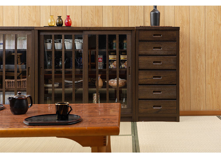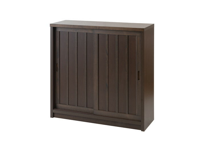 Hinata 日向シリーズ 和モダン引戸キャビネット 幅90.5 奥行30 高さ86.5 キャビネット ブラウン 日本製 国産 完成品 収納 お洒落 一人暮らし 棚 サイドボード DVD 本 収納家具 チェスト リビング(代引不可)
