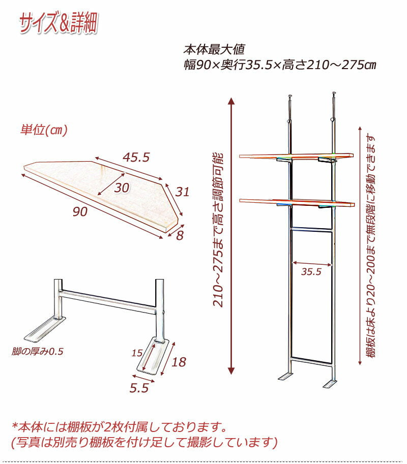■商品サイズ/本体:(約)幅90×奥行35.5×高さ210~275cm、棚板:(約)幅90×奥行30cm