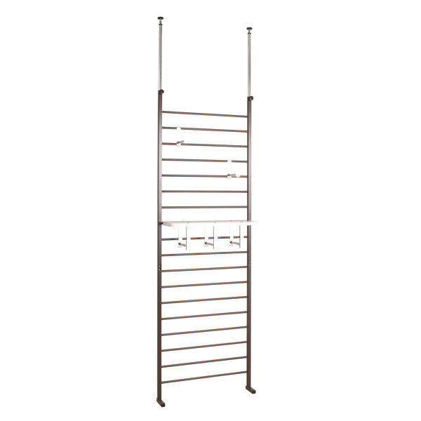サイズ:(約)幅65(上部突っ張り部66)×奥行き20×高さ200~260cm棚板:幅59.5×奥行17.5×厚み2cm棚板可動間隔約8.5cmフック出幅14cm本体:スチール(エポキシ樹脂粉体塗装)棚板:プリント紙化粧繊維板付属品:フック2個、棚板(ハンガー付)1枚耐荷重量/棚板:約3kg、フック約1kg商品重量:13kg 日本製