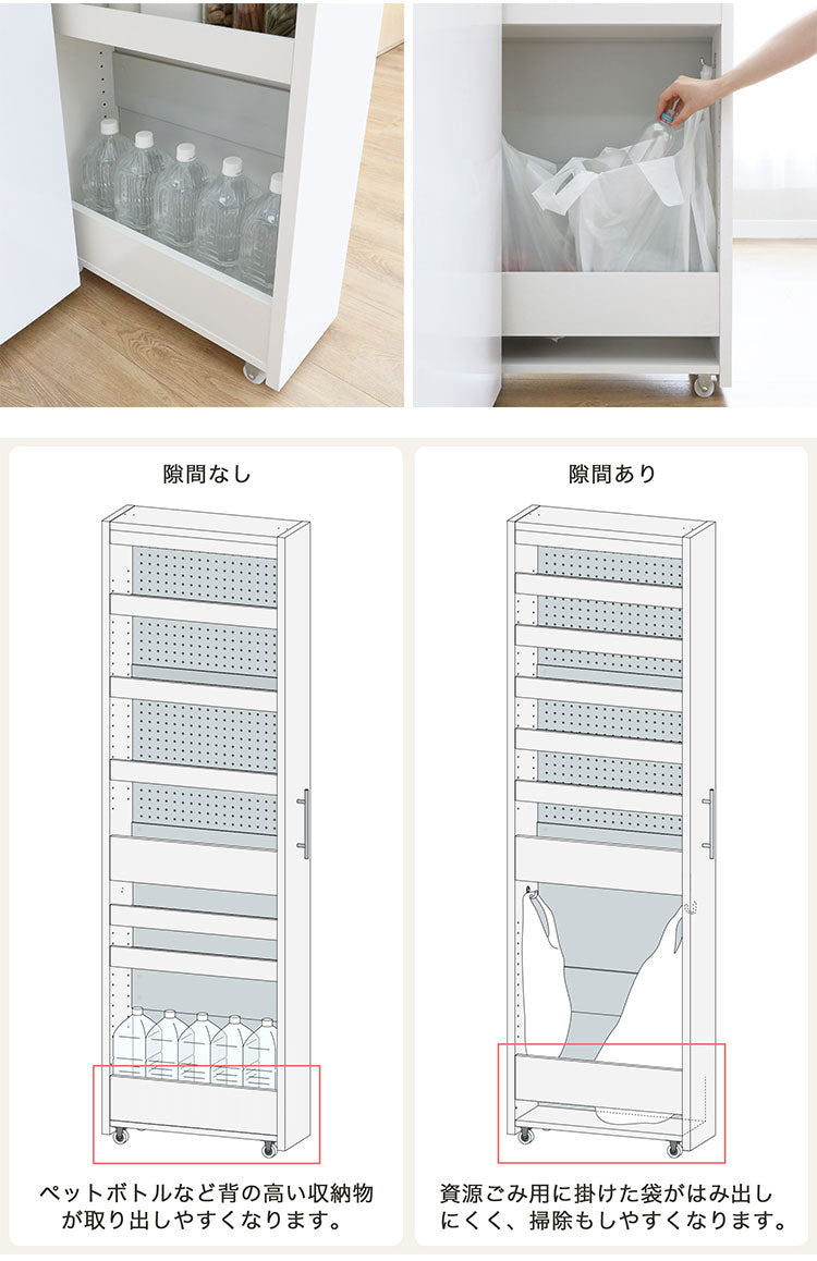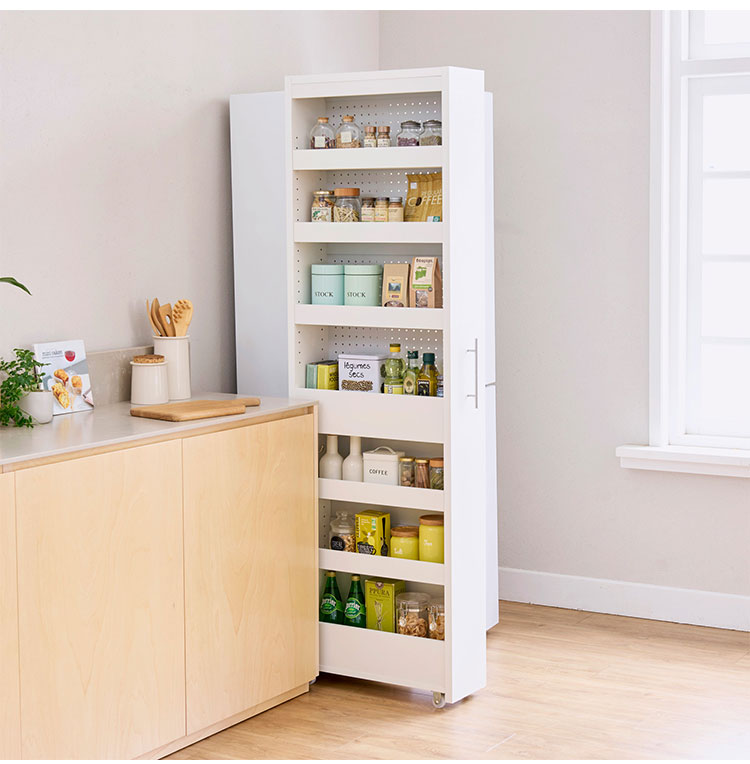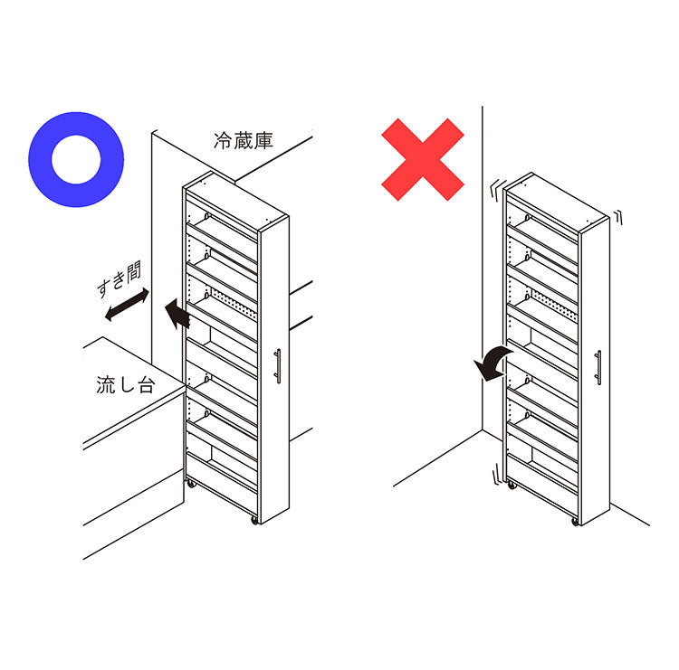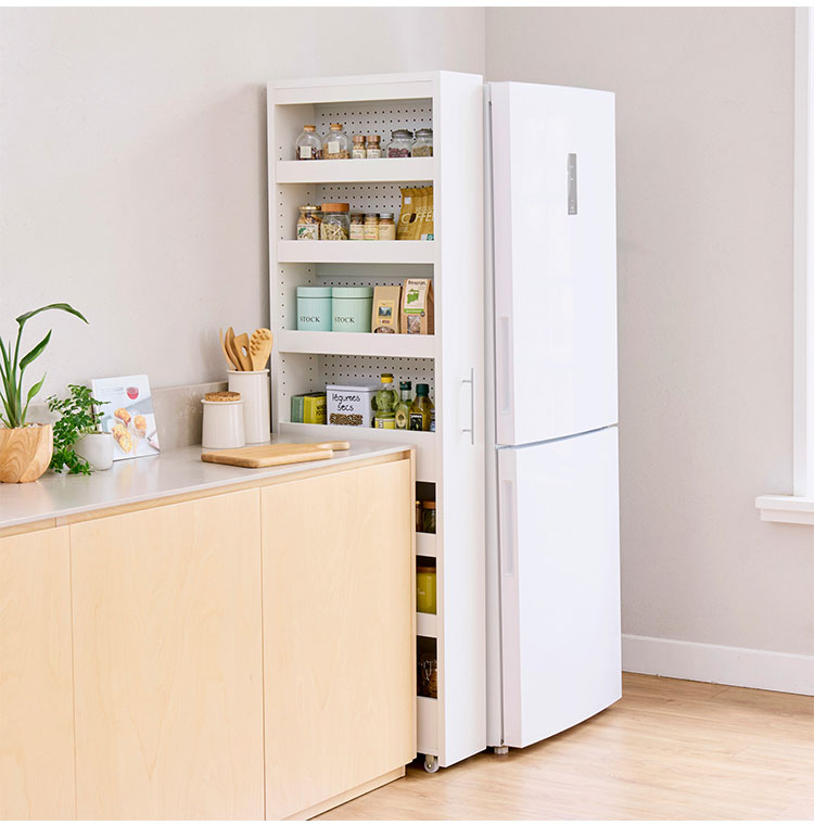 冷蔵庫の横や食器棚の横など隙間を有効活用してキッチンをスッキリ快適にできます。