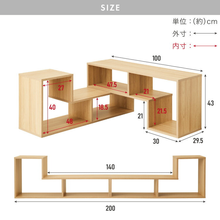 レイアウト自在の テレビ台 テレビボード コーナー ローボード 伸縮 幅100cm~200cm オープンラックにも変形可能 おしゃれ 白 テレビラック TV台 木製 北欧風 TVボード 収納 ディスプレイ 24V 60V